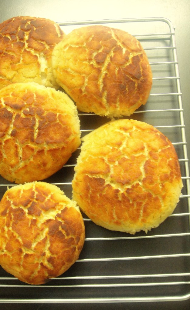 Even though I had completed the Daring Bakers March challenge on time, I’m posting a day late. I hope I dont make this a habit and try and get on top of the monthly challenge from the beginning itself. This month’s Daring Bakers challenge is the quintessential Dutch Crunch Bread from the Bay Area. Interestingly it is marketed as Tiger bread (Tijgerbrood in Dutch), or Giraffe bread as the rice flour topping on the white sandwich bread when baked takes an animal skin like appearance. Dutch Crunch actually refers to this topping of rice flour which imparts a characteristic crunch to an otherwise simple white sandwich loaf.