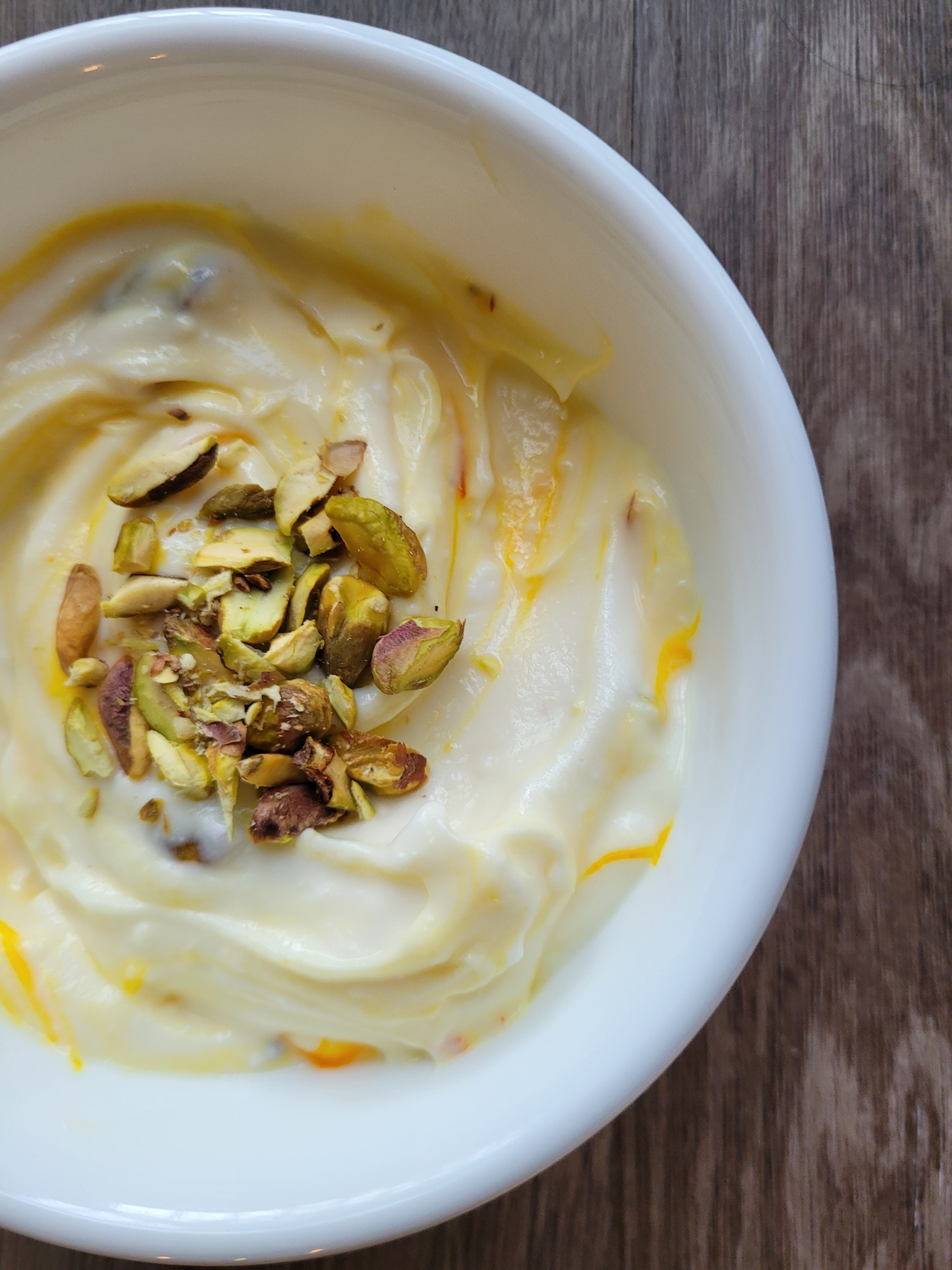 - Stir in the saffron along with the milk into the yogurt.