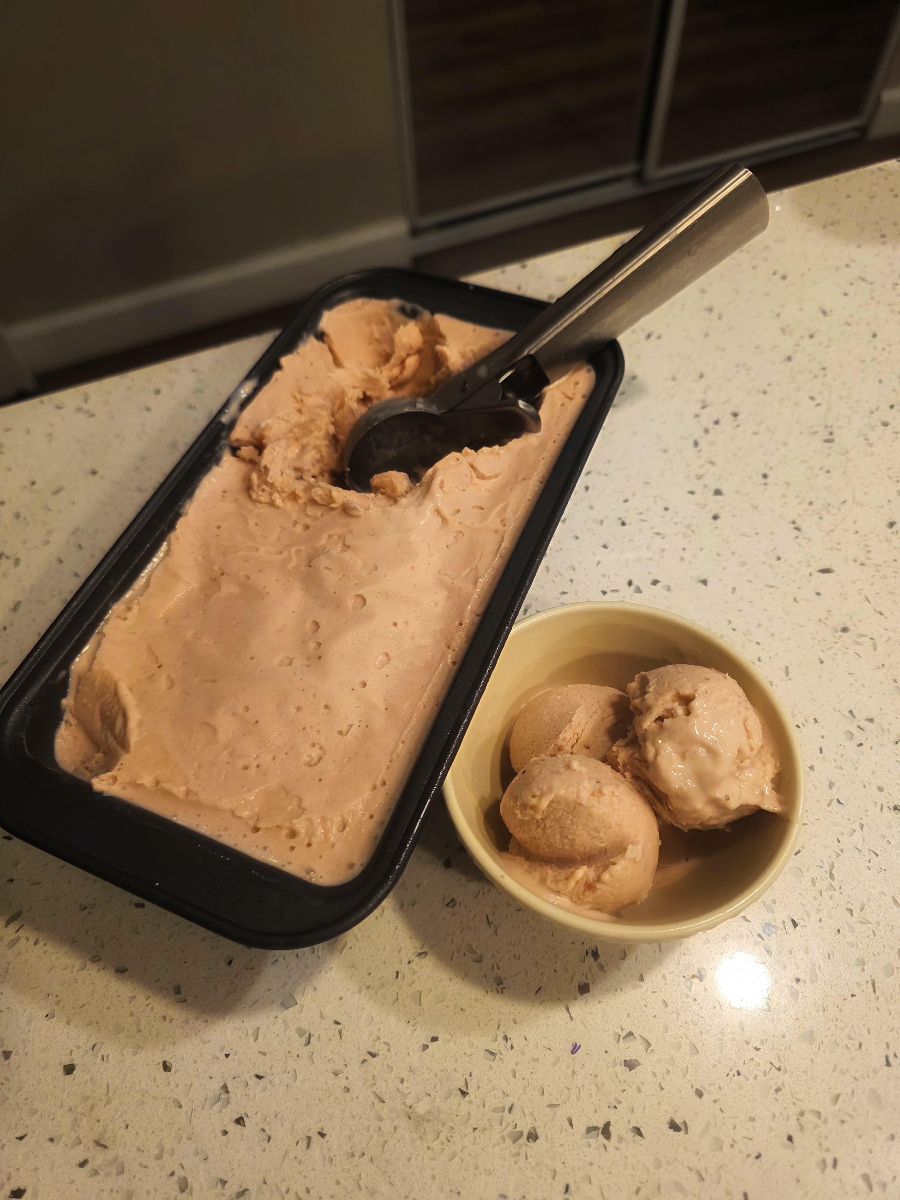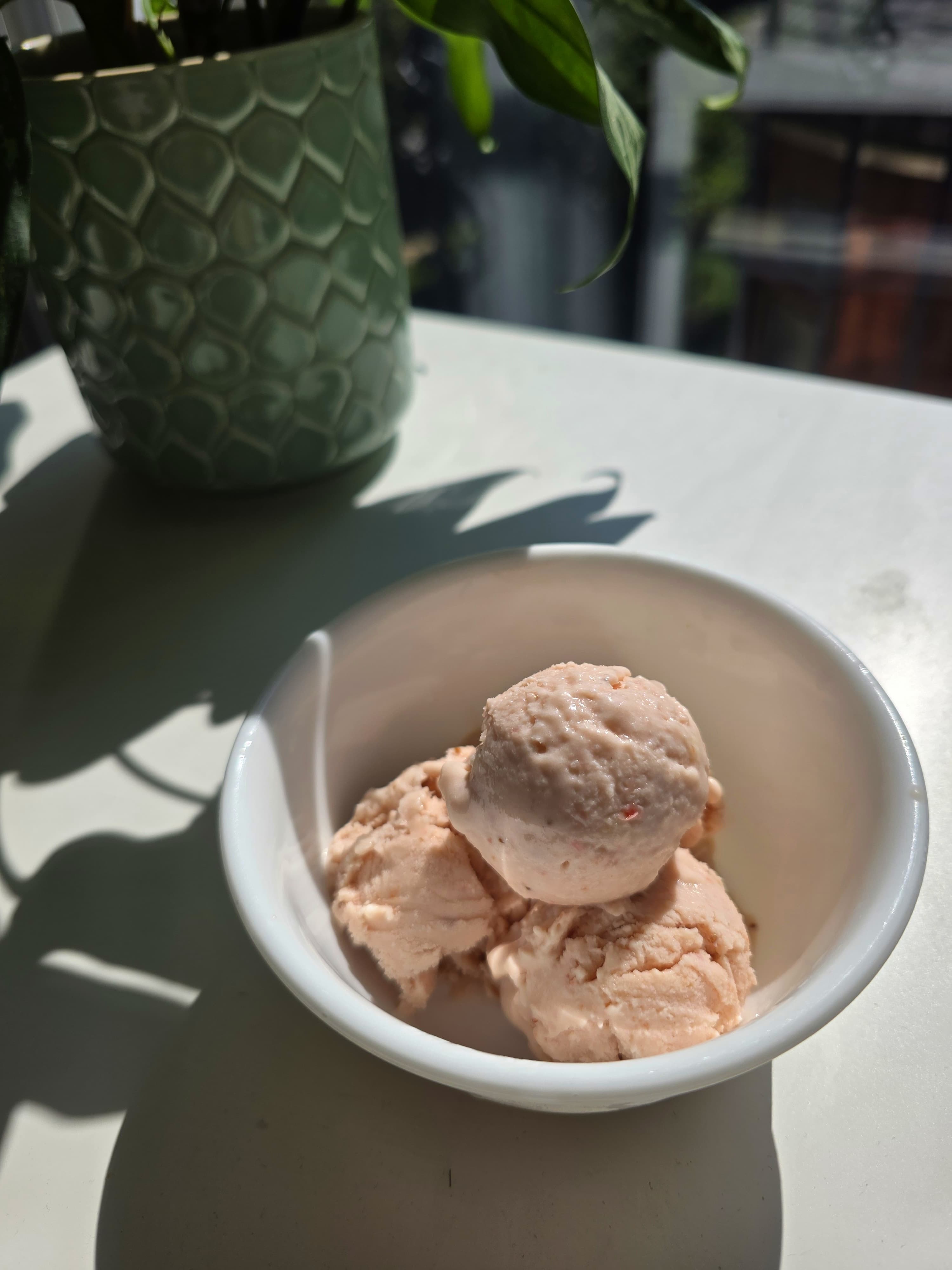 I was initially going to let it freeze overnight, but then decided to test if it had solidified. I warmed up an ice cream scoop and dug in and Voila! it came out effortlessly. I dug in to get two more scoops into my bowl and resumed watching ‘Better Call Saul’. I had read on Reddit that there is a chronological order to watching Breaking Bad and that’s what I will be doing, although some people disagree as this order gives away spoilers. I’m quite excited for this mega-binge watch event which is going to take over several weekends to finish. Okay, I am digressing now. Back to the ice cream!