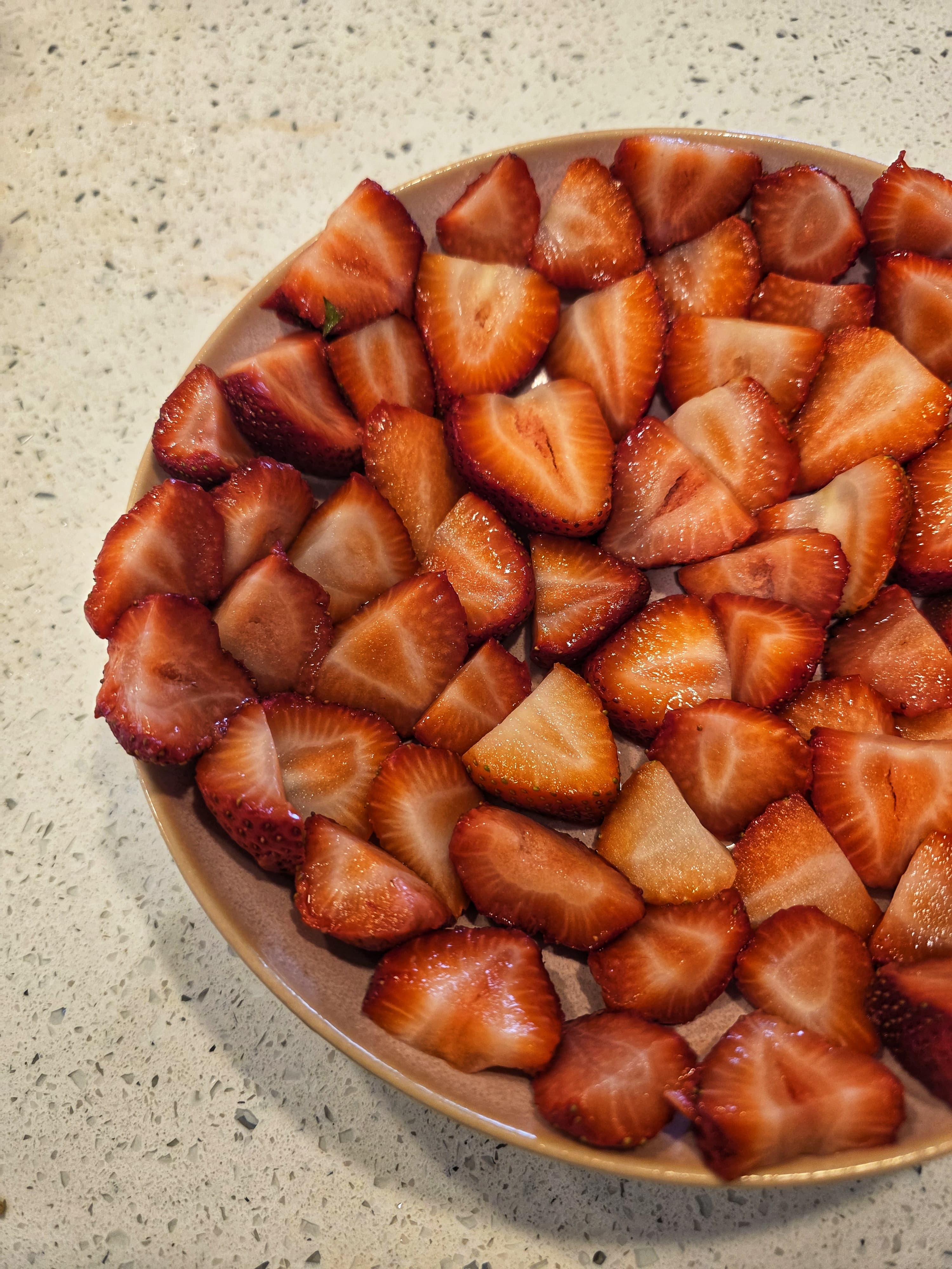 So instead of cooking batch meals for the upcoming work week, I dedicated my Saturday afternoon to an 8 hour long experiment. I quickly and meticulously made the two components – the roasted strawberry puree and the ice cream base according to the recipe instructions. Although everything else was in place, I was still missing a vital part of the experiment – the ice cream maker! I decided to not let its absence hamper my unlikely enthusiasm for ice cream for once and decided to make good use of my Kitchen Aid stand mixer instead. I placed the mixer bowl with the ice cream mixture along with the paddle attachment in the freezer and turned down the apartment cooling to as low as I could take (clearly only one of which was actually going to help!). For the next 3 hours I made several trips between the freezer and the stand mixer, alternating between freezing the ice cream for 30 minutes and whisking for 2 minutes. I eventually got tired because I had no clue about the ice cream’s ‘done-ness’ and then poured the mixture into a 9 inch loaf pan, covered the surface with parchment and froze it for another 4 hours.